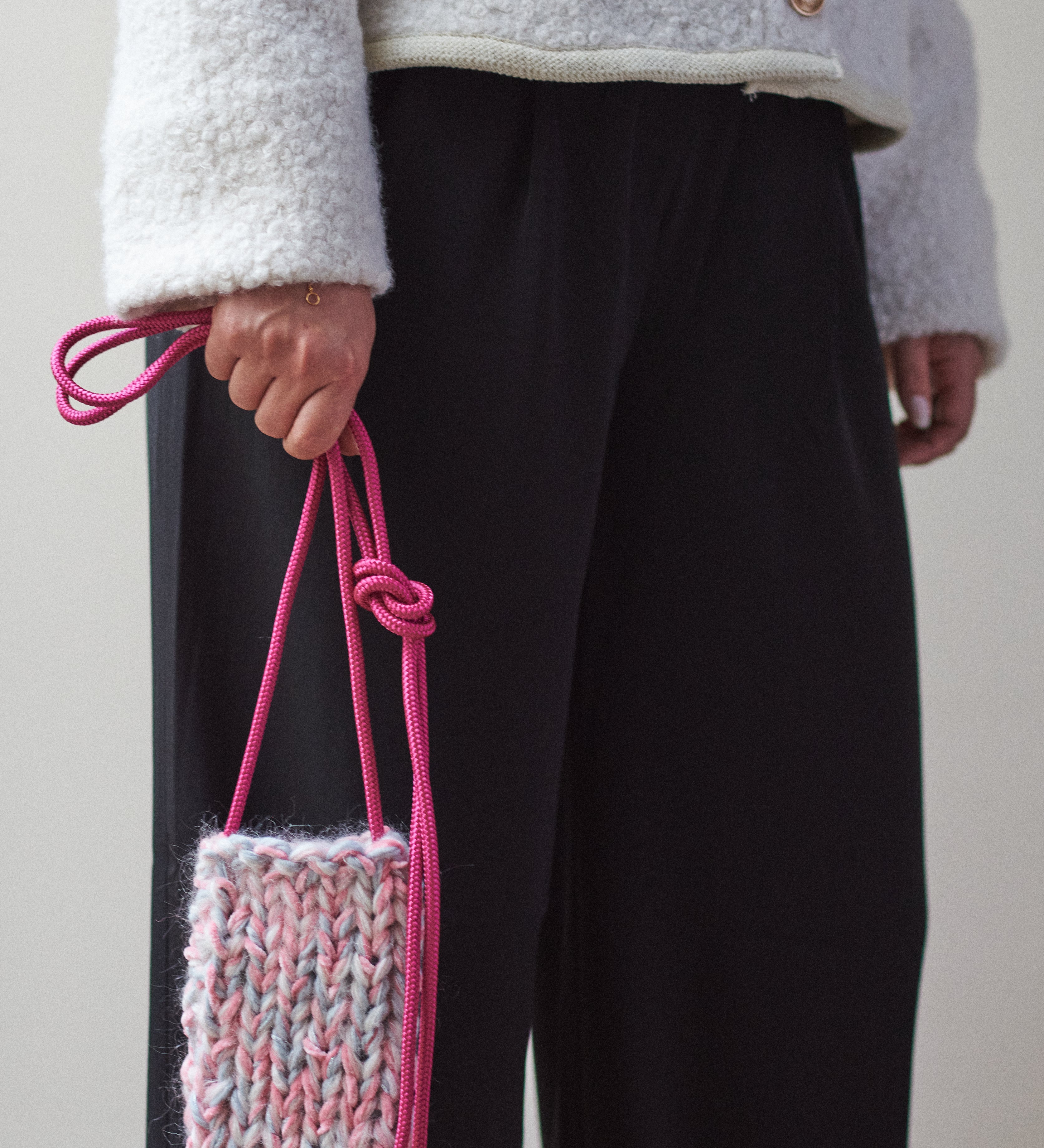 Knitted bubble gum phone bag
