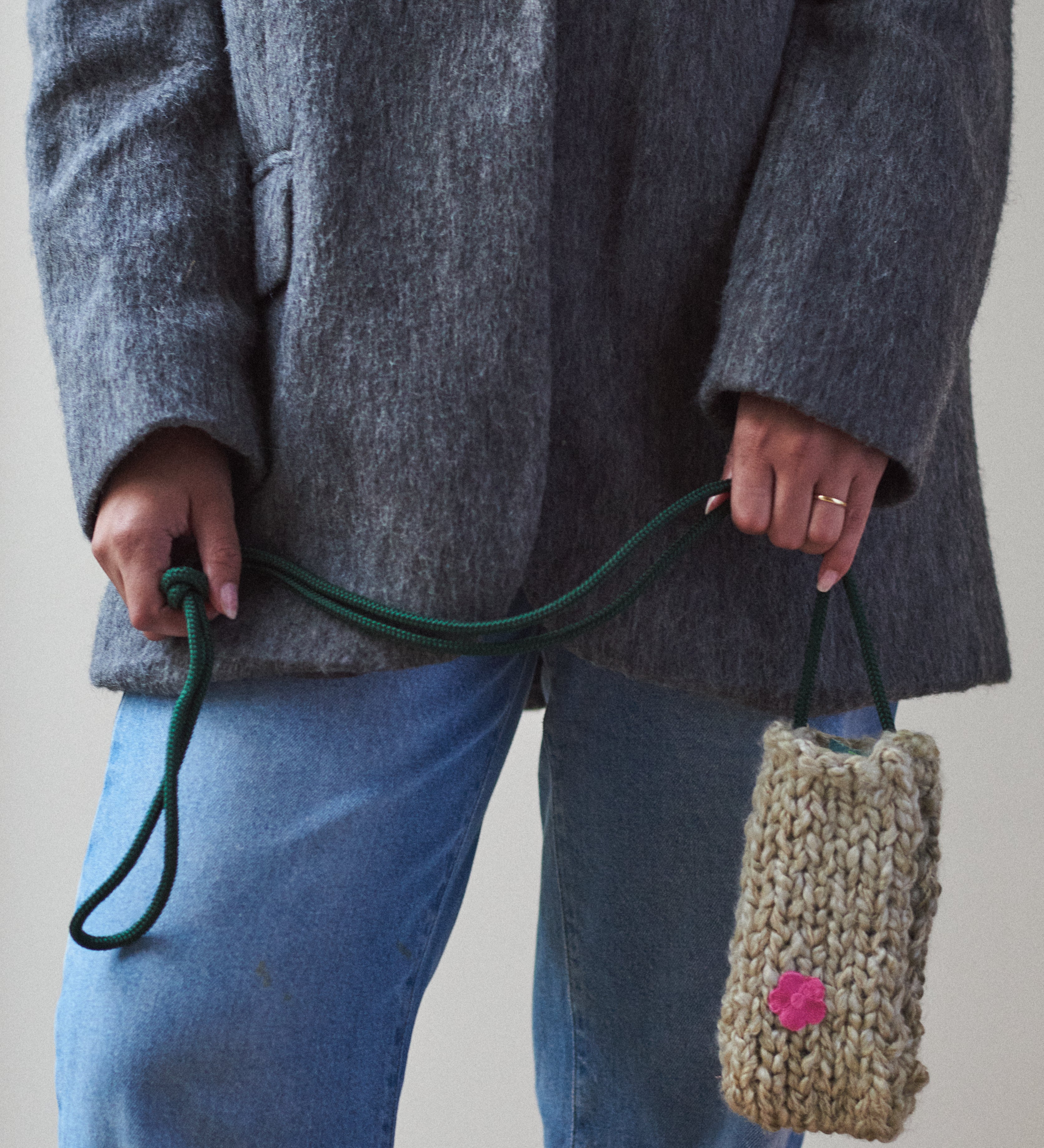 Knitted clover phone bag