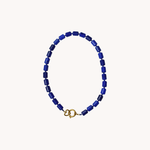 Een prachtige blauwe kraal (Jade), daarvan is de Skyline necklace gemaakt. Door het boei - en hartjes slot kun je makkelijk je favoriete bedel eraan hangen.