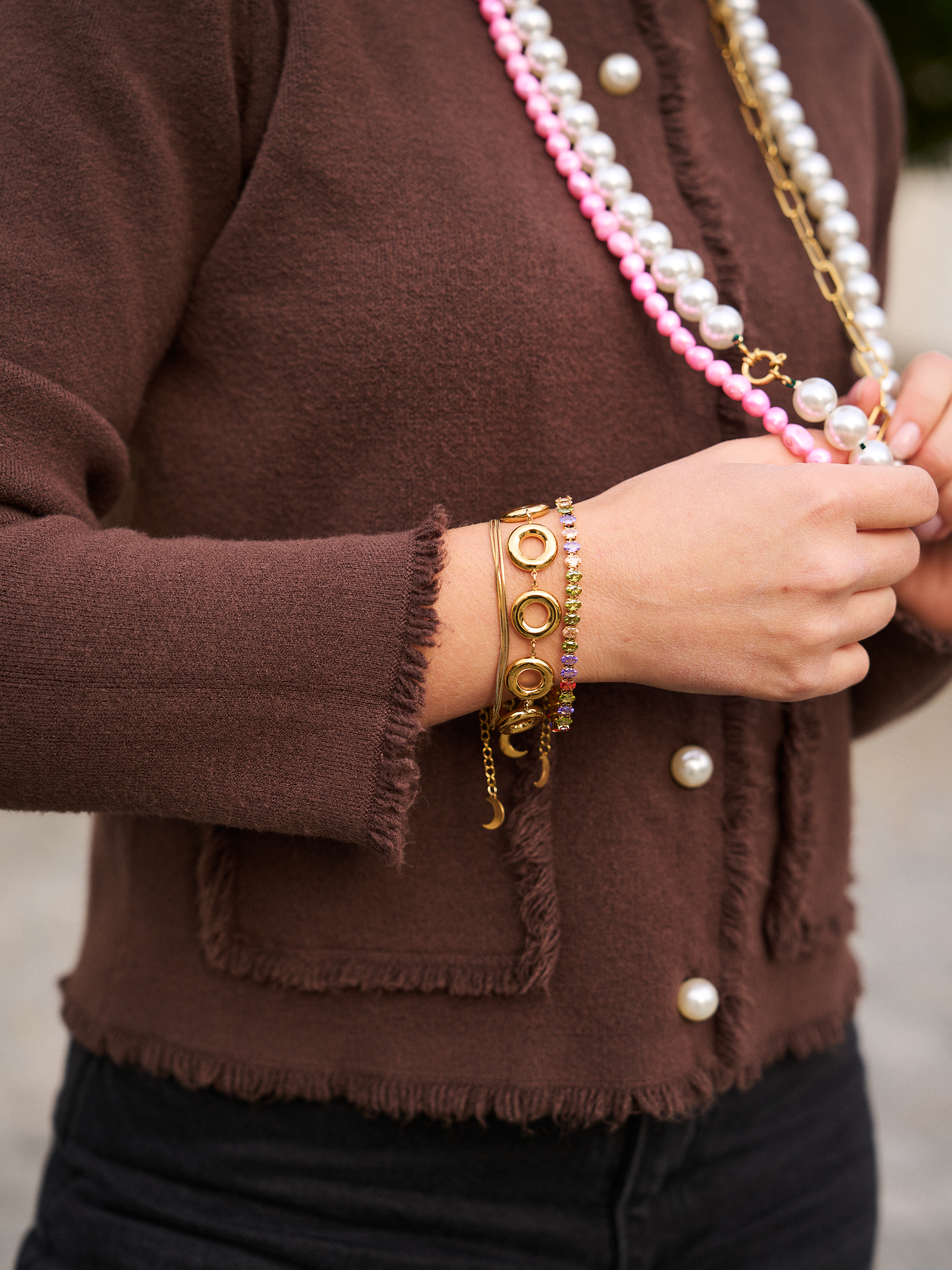 De To shine for bracelet is gemaakt van glimmende gekleurde steentjes, je kan het heel erg leuk combineren met andere armbandjes. Dit gaat deze winter een echte eye-catcher zijn!